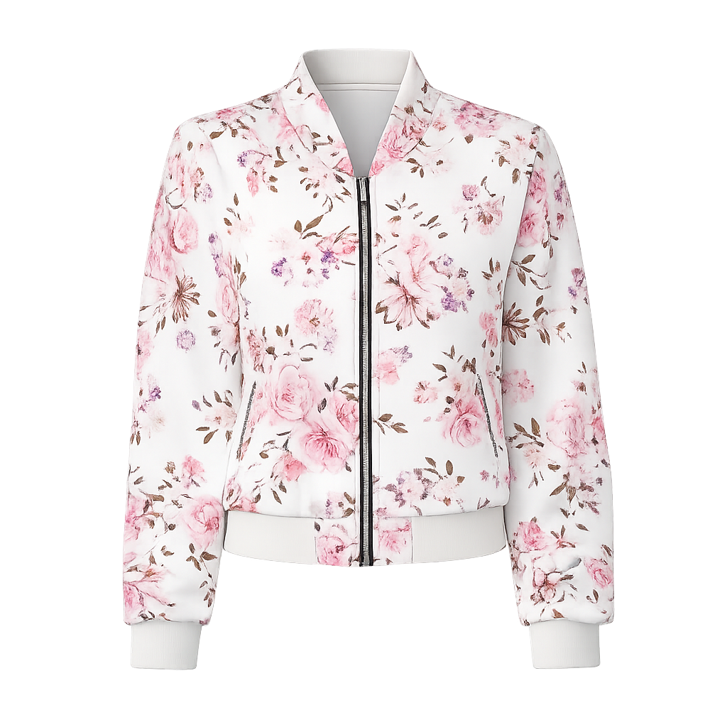 Add charm to your layering game with the Ruby Women’s Elegant Flower Pattern Zip-Up Jacket—where beauty meets everyday wearability.