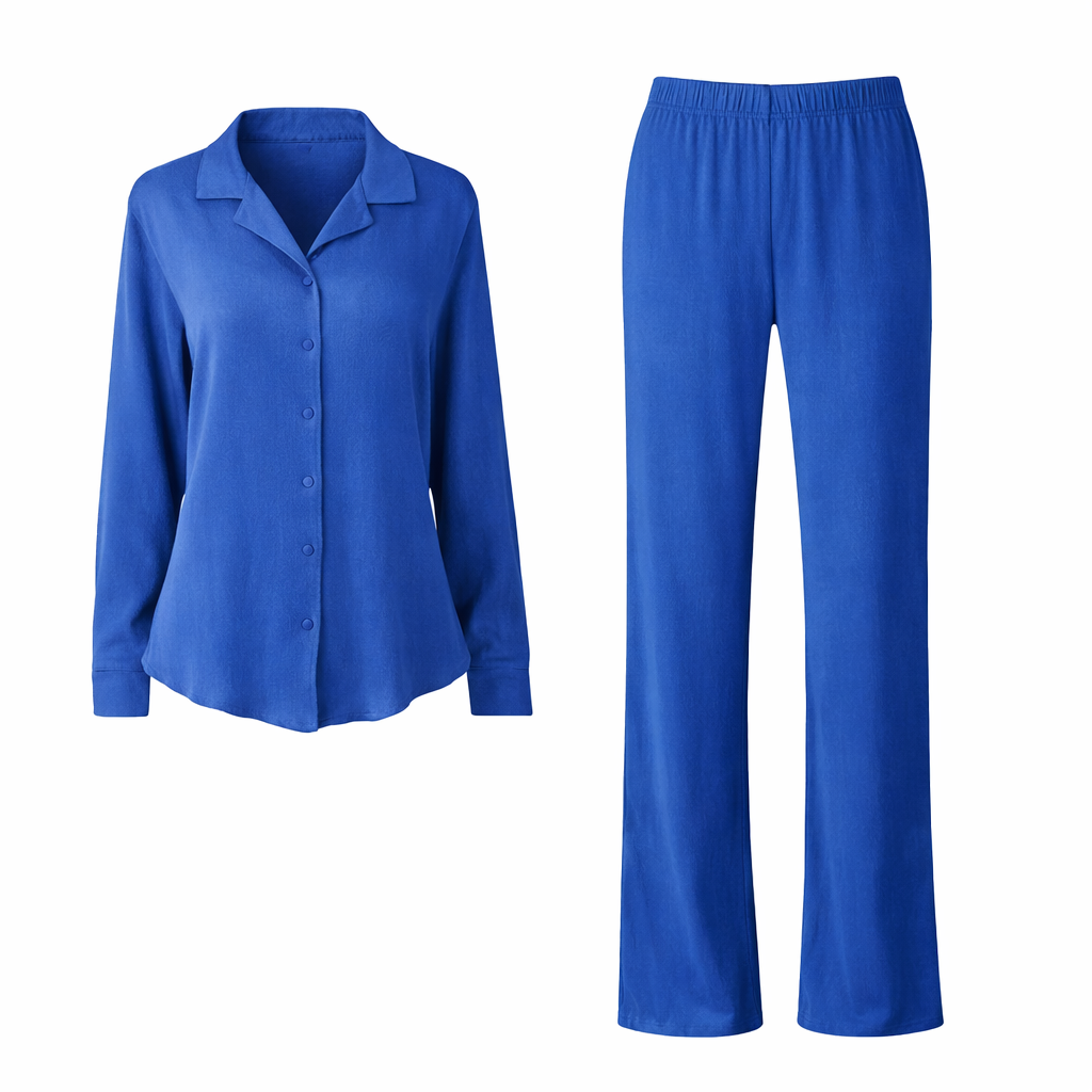 Unveil the perfect mix of elegance and ease with our CLEO™ – Stylish Collared Long Sleeve Top and Wide-Leg Pant Set. Designed for the contemporary woman, this set offers a refined yet relaxed look that's ideal for everything from brunch dates to laid-back office days.